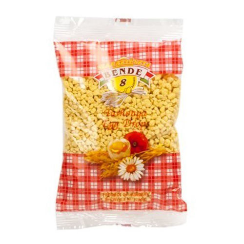 In Hungarian, this egg-drop pasta known as "tarhonya" It is made of water, flour, and whole eggs, which are formed into barley-sized "grains", making it similar in appearance to a large couscous. Pick a package or two up today and check out Bende's other tasty noodles! Ingredients: flour, eggs Product of Hungary
